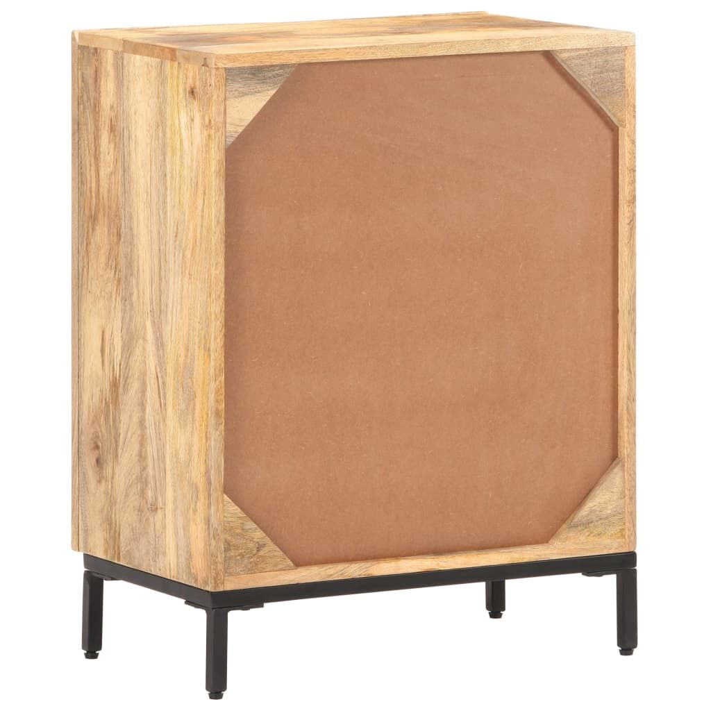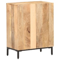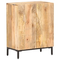 The wooden sideboard adds a vintage style to your living room. The sideboard is made of solid mango wood, a tropical hardwood with the strength to bear the weight. It also stands the wear and tear of time, making it stable and durable. The black powder-coated iron base combined with steel provides extra stability for the storage cabinet. The craftsmanship and the beautiful wood grains make every piece of furniture unique and slightly different from the next. This side cabinet also features 2 doors providing ample storage space for keeping your essential items organised and within reach. Important note: Colours and grains vary from piece to piece, making each piece unique. The delivery is random, ensuring the exclusivity and individuality of your product.
