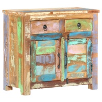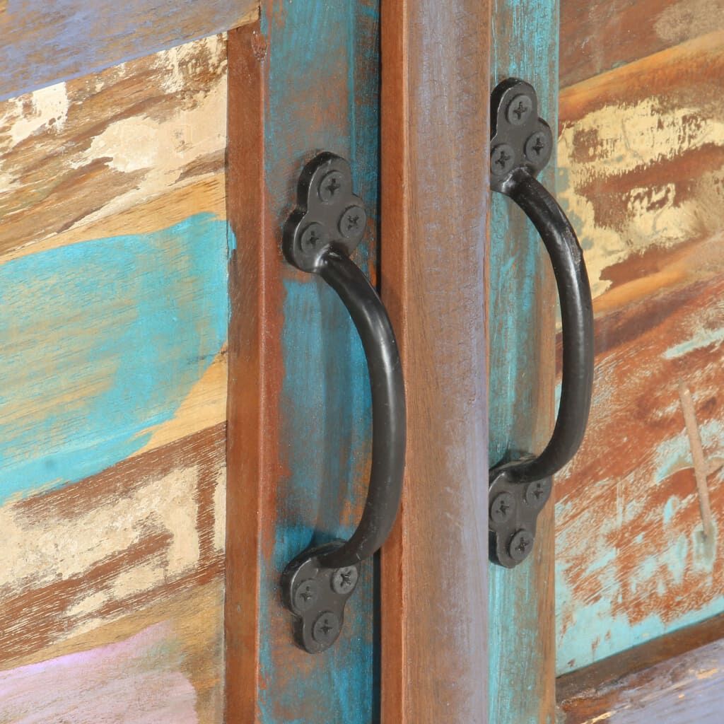 This antique-style wooden side cabinet, coming with one spacious compartment with 2 doors and 2 drawers, offers you ample storage space and helps you to maintain your items in great order. You can also put your computer, tablet, books, vases or some decorations on the sturdy top surface. Whether as a cupboard in the living room, or a cabinet in the bedroom, the reclaimed wood cupboard is a good choice. It can also be used as a side table, sideboard, high board, console table, etc. This storage cupboard is made of solid reclaimed wood, which means that every piece of furniture is unique and slightly different from the next. Furniture made from reclaimed wood has the characteristics of different woods like teak, mango wood and acacia. Reclaimed wood is solid, stable, durable, and beautiful. Signs of wear and visible grain structure give each piece its own history and a unique look. The cabinet is handmade, and the craftsmanship adds to its spectacular retro style. Every step of the process is carried out with the greatest care, be it polishing, painting or lacquering. Please note: Colours vary from piece to piece, making each of our sideboards unique. The delivery is random, ensuring the exclusivity and individuality of your product.