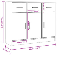 This classic sideboard, featuring a timeless look, is meant to be an excellent addition to your home. Durable material: The engineered wood is of exceptional quality with smooth surface and also features strength, stability and resistance to moisture. Made of engineered wood, the storage cabinet is easy to clean with a damp cloth.Ample storage space: The buffet offers ample storage space for keeping your various daily essentials well-organised and within easy reach.Displaying function: The top of the sideboard cabinet is great for displaying your decorative items, photo albums or small plants.Practical doors: Keep your essentials free from dust by hiding them behind the doors. Warning:To prevent it being overturned, this product must be used with the provided wall attachment device.