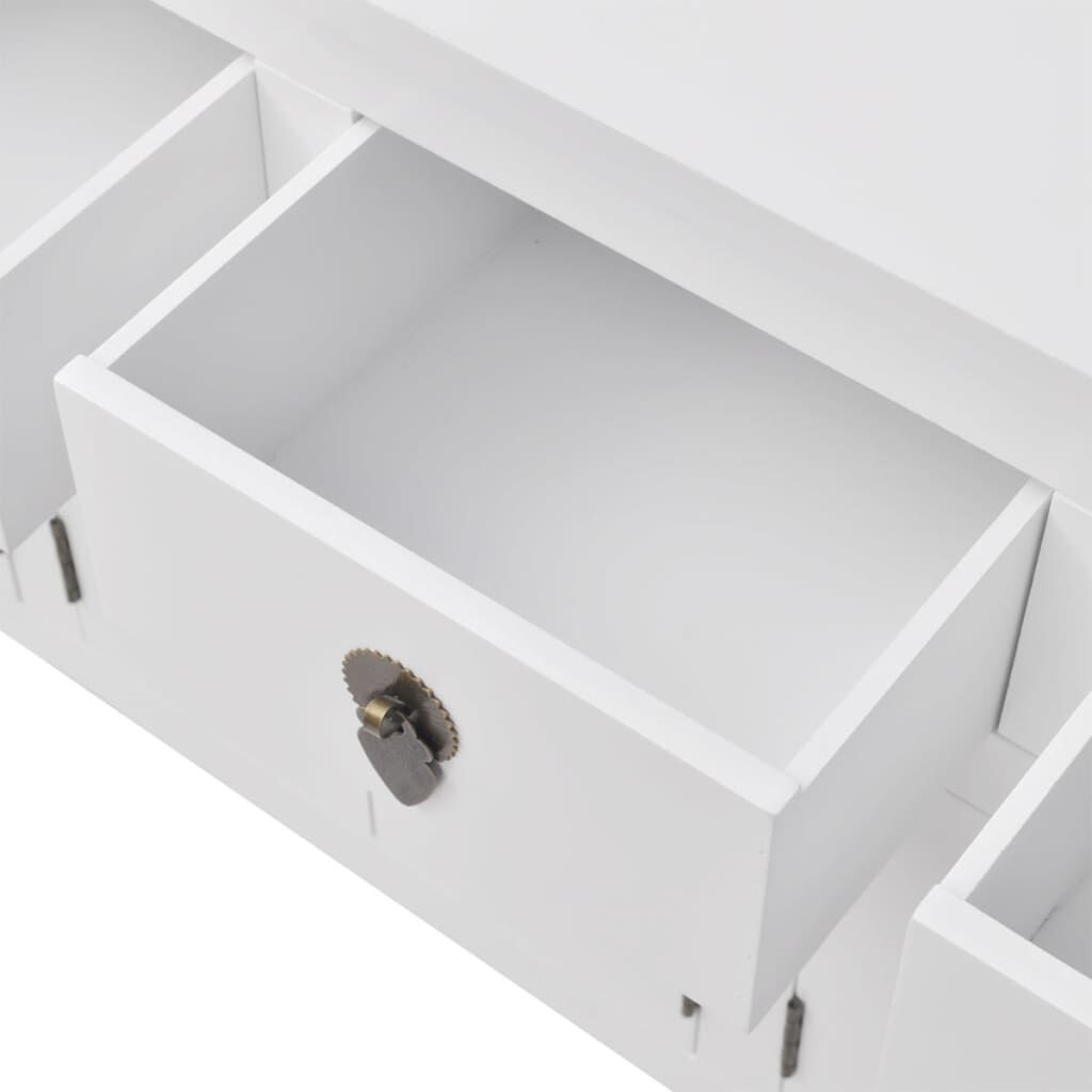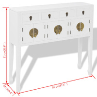 This wooden sideboard, with its classical Asian design, will be a great choice for organising and storing day-to-day items. It is also perfect to be used as a TV cabinet, a high board, a console table, a console cabinet, a side cabinet, a Chinese cabinet. This unique sideboard will make a great addition to your bedroom, study, or even hallway. This sideboard has 4 drawers and 3 cupboards for storing different types of items and trinkets. Constructed from high-quality solid wood with a white paint finish, this sideboard is highly durable.