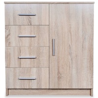 With its practical utility, the sideboard will become an ideal complement in your room. The sideboard is made of engineered wood. It consists of 4 drawers and 1 large compartment to provide ample storage space for your various items, making your room tidy and clean. Wall mounting accessories and a wall anchor to prevent the sideboard from tipping over are included in delivery. This durable storage cabinet is easy to clean. Assembly is easy.
