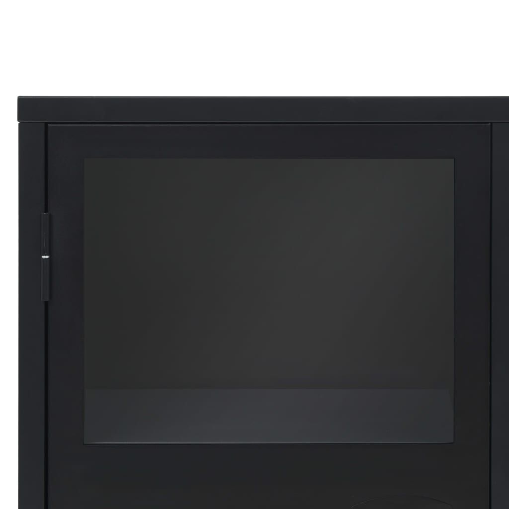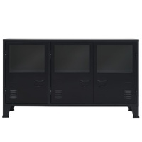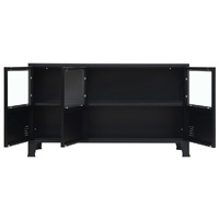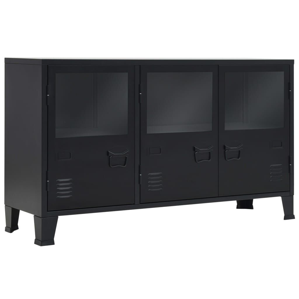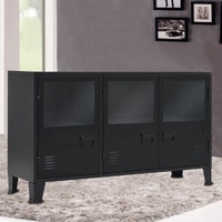 Our sideboard is not only ideal for storing your personal belongings, but will also make a unique decorative addition to your home with its cool, industrial style. The sideboard features 2 interior shelves and 3 doors with glass windows and will provide ample space for organising your clothes, books, and other accessories. Each door has a name card holder and ventilation holes to add to its industrial look. This sideboard is made of sheet metal, which makes it durable and easy to clean. Its flat top forms a convenient surface on which you can place fruit baskets, vases, or some decorative items. Assembly is easy.