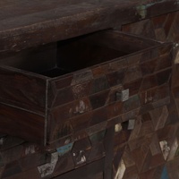 This solid wooden sideboard will make a decorative as well as practical addition to your decor. The cabinet is made of solid reclaimed wood that has been sourced from joists, floors and support beams from old buildings being demolished, and can consist of different types of wood like pine, teak, beech, oak, cedar, mango wood, acacia, etc. This means the reclaimed wood retains the characteristics of these different types of wood. Reclaimed wood is already aged, weathered and dried, so it doesn't shrink or bend. The beautiful wood grains make every piece of furniture unique and slightly different from the next. Signs of wear and visible grain structure are indicative of the wood's rich history and give the cabinet a warm and authentic look. Every step of the process is carried out with the greatest care, be it polishing, painting or lacquering. Designed with ample storage space, the sideboard keeps your magazines, books, DVDs and multimedia devices well organised and within reach. Its steel legs also add to its sturdiness and stunning industrial style. Assembly is easy. Important note: Colours and grains may vary from piece to piece, making each of our sideboards unique. The delivery is random, ensuring the exclusivity and individuality of your product.