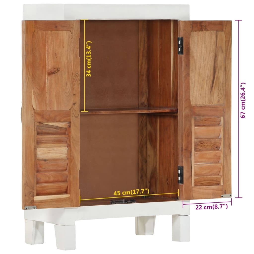 This classic wooden sideboard, featuring a timeless look, is meant to be an excellent addition to your home. Durable material: Solid acacia wood is a beautiful natural material. Acacia wood is a tropical hardwood, which is dense, sturdy, and durable.Ample storage space: Equipped with compartments, the cabinet offers ample storage space for keeping your various daily essentials well organised and within easy reach.Displaying function: The top of the cupboard is great for displaying your decorative items, photo albums or small plants.Practical doors: Keep your essentials free from dust by hiding them behind the door. Warning:To prevent overturning, this product must be used with the wall attachment device provided.