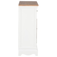 Add a touch of elegance with our classic sideboard! This French style sideboard features ample storage space. It will make a practical as well as decorative addition to your living room, bedroom or any entryway. The landhouse style side cabinet is made of solid wood that has been applied to a painting finish, giving the cabinet a refine look, and making it easy to clean with a damp cloth. The wooden cabinet has two drawers and two storage compartments with doors for extra storage space. Additionally, these classic knobs add to the storage cabinet's vintage style. The product is easy to assemble. Upgrade your interior to the next level with our simple yet elegant sideboard!