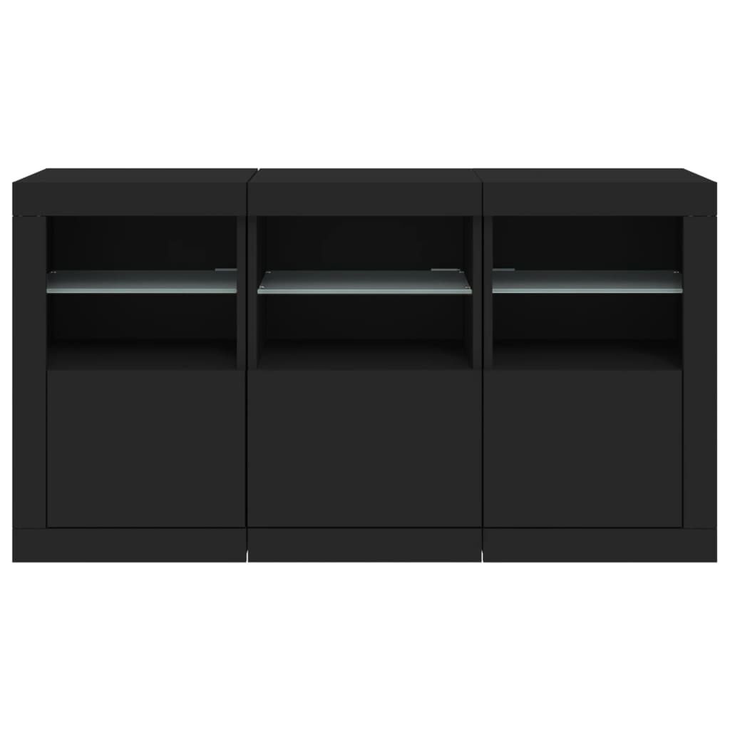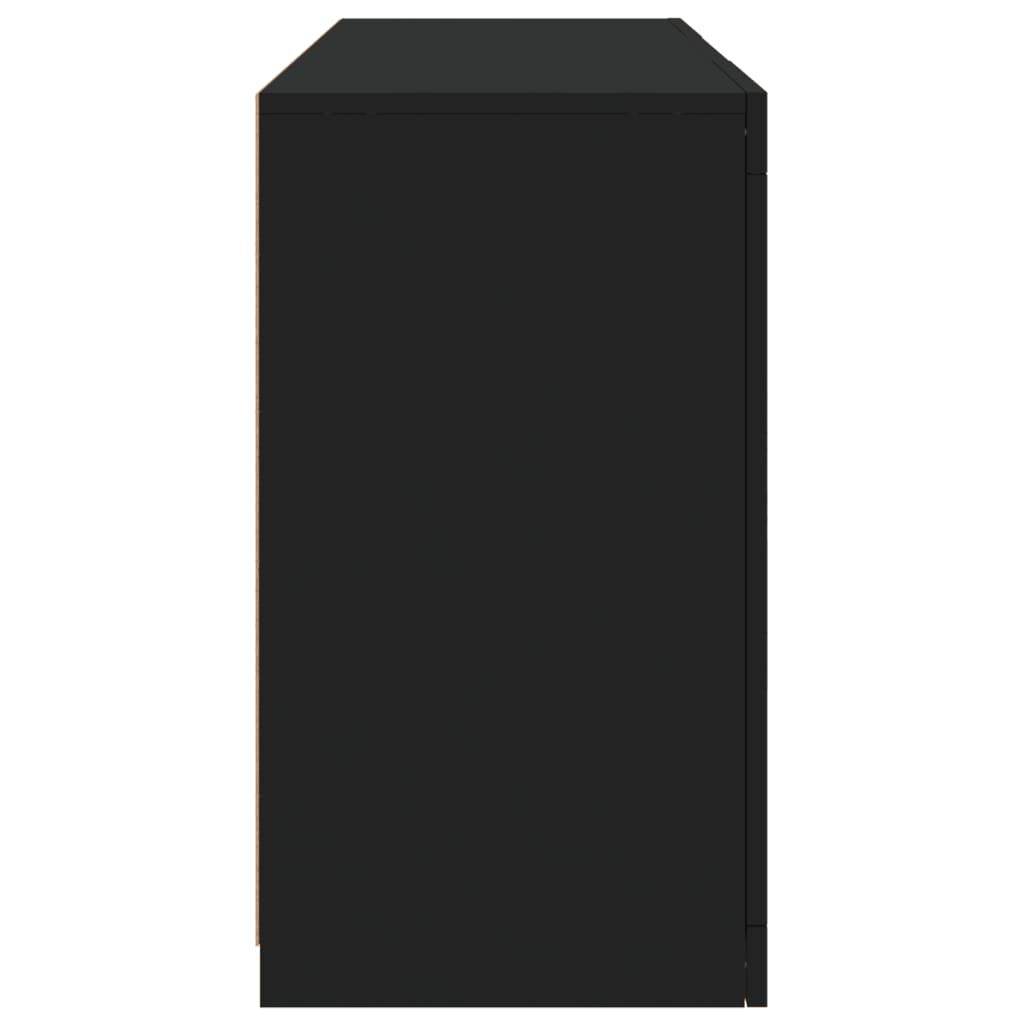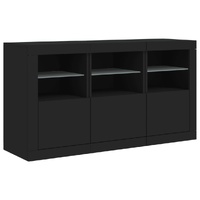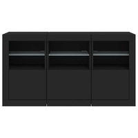 Decorate your room with this modern sideboard with LED lights, it easily blends with furniture in any style at your house. Durable material: The engineered wood is of exceptional quality with smooth surface and also features strength, stability and resistance to moisture.RGB LED lights: The buffet is equipped with vibrant RGB LED lights. With various customisable menus, you can effortlessly change the colour of the lights and even set them to adjust automatically. These LED lights not only enhance the contemporary look of the sideboard cabinet but also add to its trendy appeal.Ample storage space: The storage cabinet offers plenty of space to keep your everyday items neatly arranged and easily accessible.Displaying function: The sturdy top of the hallway cabinet is ideal for displaying decorative objects, photo frames, or potted plants.Practical doors: Keep your essentials free from dust by hiding them behind the doors of the side cabinet. Good to know:The product has a USB connector that requires a certified 5V USB power source (not included). Warning:To prevent it being overturned, this product must be used with the provided wall attachment device.