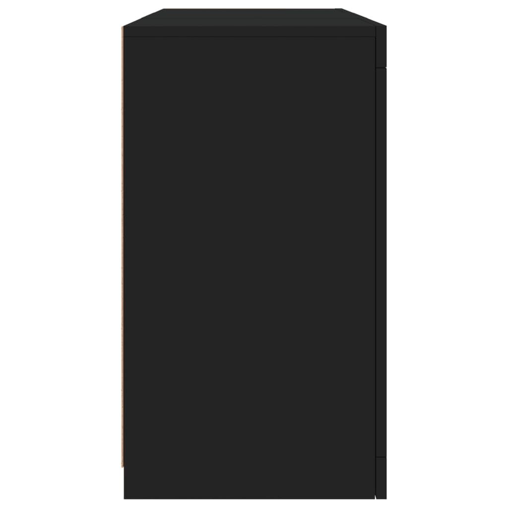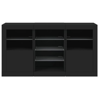 Decorate your room with this modern sideboard with LED lights, it easily blends with furniture in any style at your house. Durable material: The engineered wood is of exceptional quality with smooth surface and also features strength, stability and resistance to moisture.RGB LED lights: The buffet is equipped with vibrant RGB LED lights. With various customisable menus, you can effortlessly change the colour of the lights and even set them to adjust automatically. These LED lights not only enhance the contemporary look of the sideboard cabinet but also add to its trendy appeal.Ample storage space: The storage cabinet offers plenty of space to keep your everyday items neatly arranged and easily accessible.Displaying function: The sturdy top of the hallway cabinet is ideal for displaying decorative objects, photo frames, or potted plants.Practical doors: Keep your essentials free from dust by hiding them behind the doors of the side cabinet. Good to know:The product has a USB connector that requires a certified 5V USB power source (not included). Warning:To prevent it being overturned, this product must be used with the provided wall attachment device.
