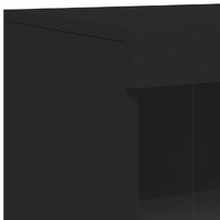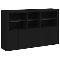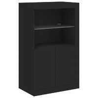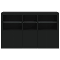 Decorate your room with this modern sideboard with LED lights, it easily blends with furniture in any style at your house. Durable material: The engineered wood is of exceptional quality with smooth surface and also features strength, stability and resistance to moisture.RGB LED lights: The buffet is equipped with vibrant RGB LED lights. With various customisable menus, you can effortlessly change the colour of the lights and even set them to adjust automatically. These LED lights not only enhance the contemporary look of the sideboard cabinet but also add to its trendy appeal.Ample storage space: The storage cabinet offers plenty of space to keep your everyday items neatly arranged and easily accessible.Displaying function: The sturdy top of the hallway cabinet is ideal for displaying decorative objects, photo frames, or potted plants.Practical doors: Keep your essentials free from dust by hiding them behind the doors of the side cabinet. Good to know:The product has a USB connector that requires a certified 5V USB power source (not included). Warning:To prevent it being overturned, this product must be used with the provided wall attachment device.