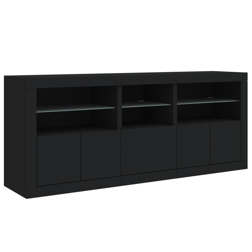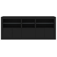 Decorate your room with this modern sideboard with LED lights, it easily blends with furniture in any style at your house. Durable material: The engineered wood is of exceptional quality with smooth surface and also features strength, stability and resistance to moisture.RGB LED lights: The buffet is equipped with vibrant RGB LED lights. With various customisable menus, you can effortlessly change the colour of the lights and even set them to adjust automatically. These LED lights not only enhance the contemporary look of the sideboard cabinet but also add to its trendy appeal.Ample storage space: The storage cabinet offers plenty of space to keep your everyday items neatly arranged and easily accessible.Displaying function: The sturdy top of the hallway cabinet is ideal for displaying decorative objects, photo frames, or potted plants.Practical doors: Keep your essentials free from dust by hiding them behind the doors of the side cabinet. Good to know:The product has a USB connector that requires a certified 5V USB power source (not included). Warning:To prevent it being overturned, this product must be used with the provided wall attachment device.