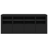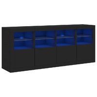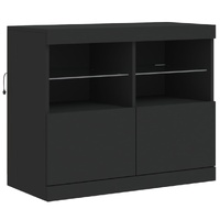Decorate your room with this modern sideboard with LED lights, it easily blends with furniture in any style at your house. Durable material: The engineered wood is of exceptional quality with smooth surface and also features strength, stability and resistance to moisture.RGB LED lights: The buffet is equipped with vibrant RGB LED lights. With various customisable menus, you can effortlessly change the colour of the lights and even set them to adjust automatically. These LED lights not only enhance the contemporary look of the sideboard cabinet but also add to its trendy appeal.Ample storage space: The storage cabinet offers plenty of space to keep your everyday items neatly arranged and easily accessible.Displaying function: The sturdy top of the hallway cabinet is ideal for displaying decorative objects, photo frames, or potted plants.Practical doors: Keep your essentials free from dust by hiding them behind the doors of the side cabinet. Good to know:The product has a USB connector that requires a certified 5V USB power source (not included). Warning:To prevent it being overturned, this product must be used with the provided wall attachment device.