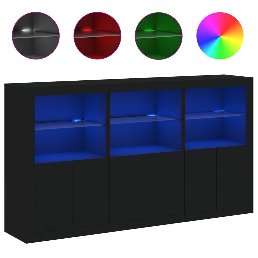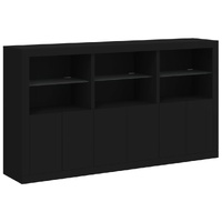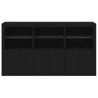 Decorate your room with this modern sideboard with LED lights, it easily blends with furniture in any style at your house. Durable material: The engineered wood is of exceptional quality with smooth surface and also features strength, stability and resistance to moisture.RGB LED lights: The buffet is equipped with vibrant RGB LED lights. With various customisable menus, you can effortlessly change the colour of the lights and even set them to adjust automatically. These LED lights not only enhance the contemporary look of the sideboard cabinet but also add to its trendy appeal.Ample storage space: The storage cabinet offers plenty of space to keep your everyday items neatly arranged and easily accessible.Displaying function: The sturdy top of the hallway cabinet is ideal for displaying decorative objects, photo frames, or potted plants.Practical doors: Keep your essentials free from dust by hiding them behind the doors of the side cabinet. Good to know:The product has a USB connector that requires a certified 5V USB power source (not included). Warning:To prevent it being overturned, this product must be used with the provided wall attachment device.