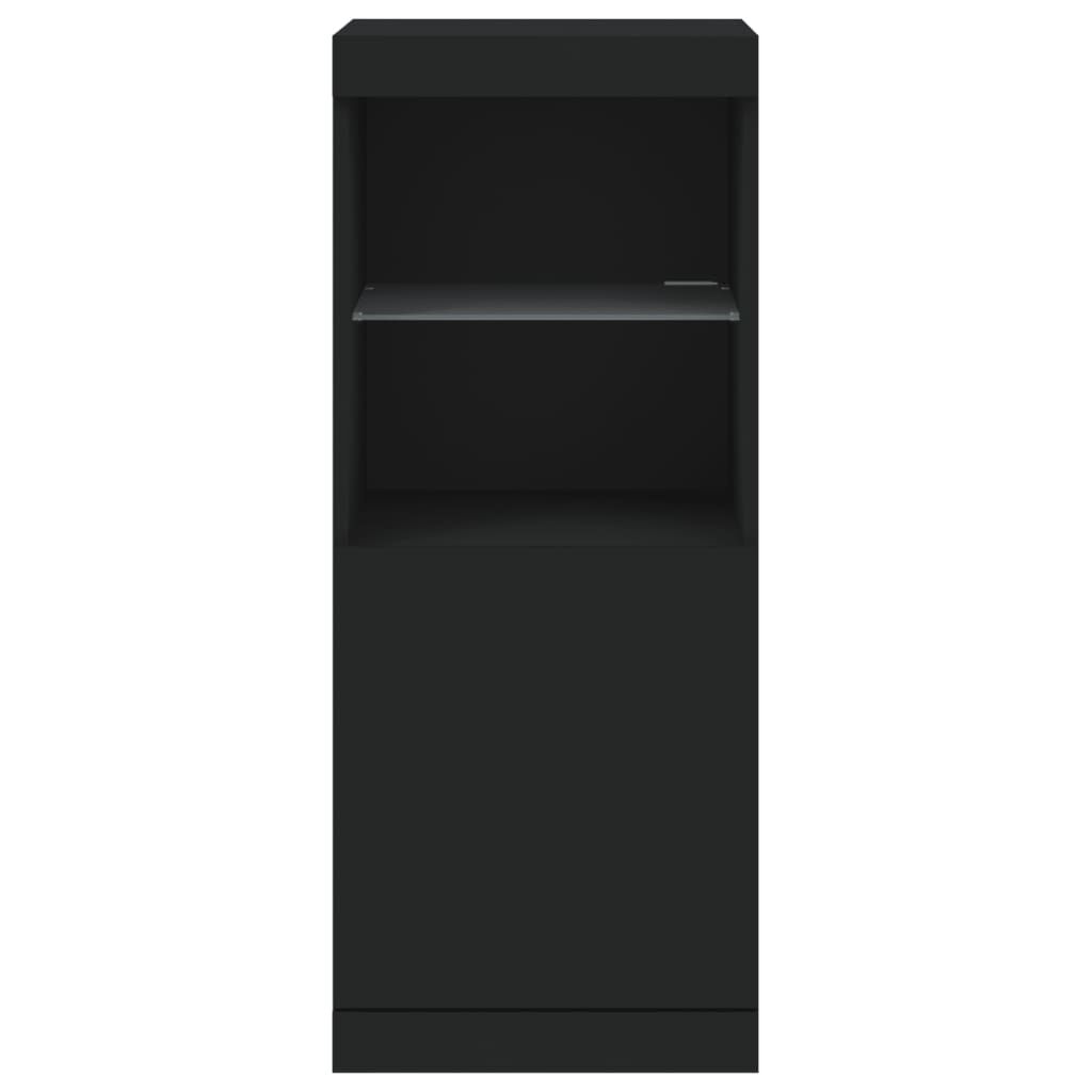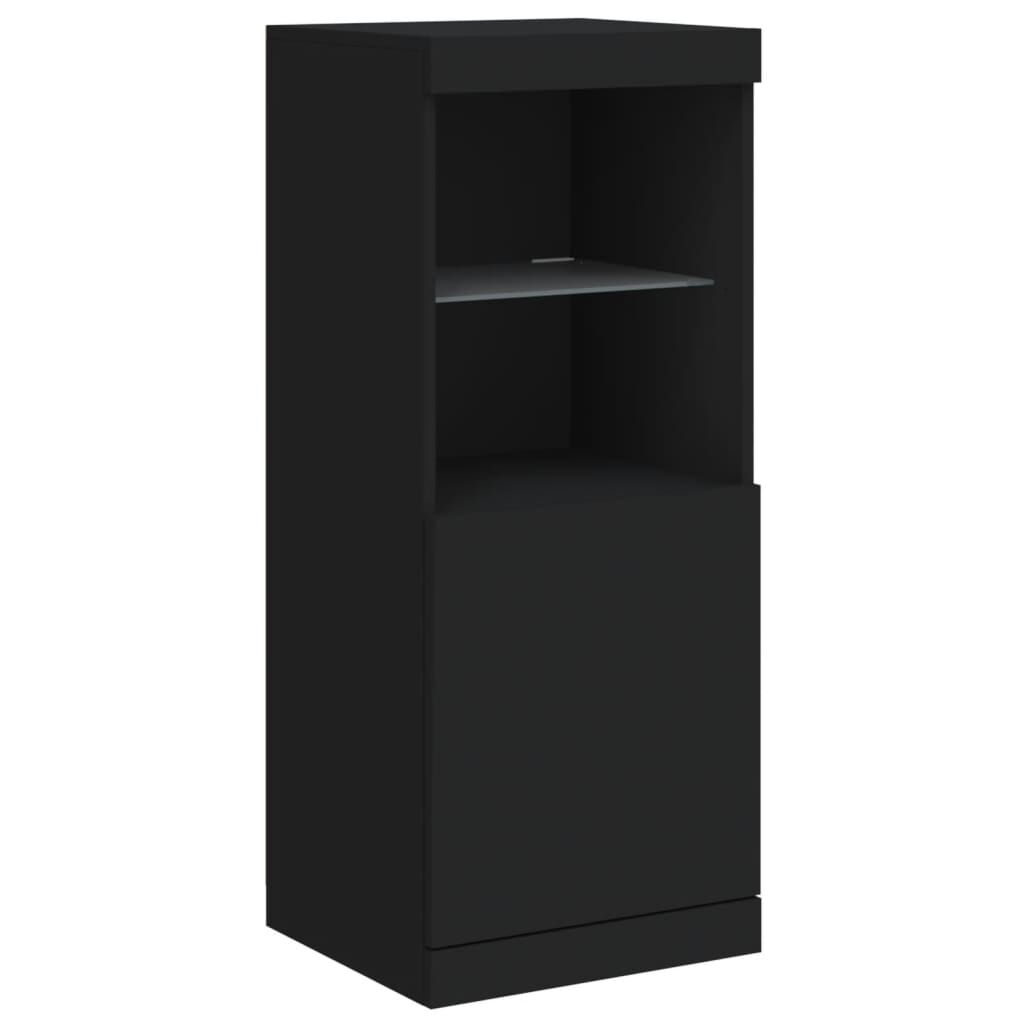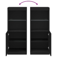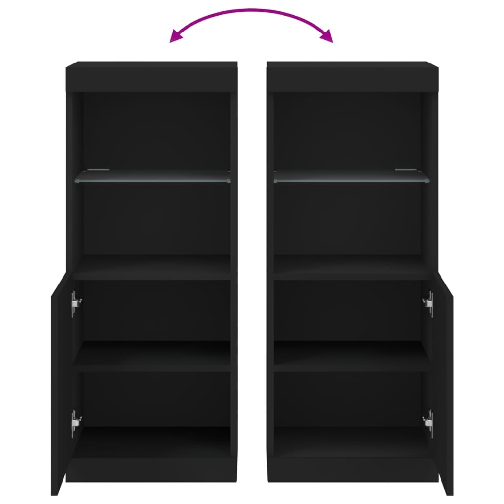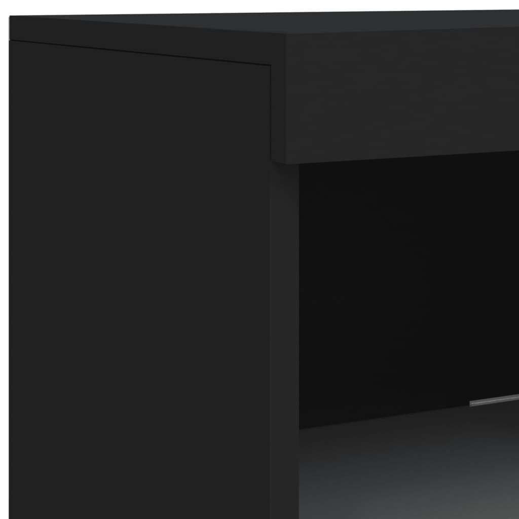 Decorate your room with this modern sideboard with LED lights, it easily blends with furniture in any style at your house. Durable material: The engineered wood is of exceptional quality with a smooth surface and features strength, stability and resistance to moisture.Ample storage space: The buffet provides plenty of storage space for keeping your magazines, books, remote controls and other small items well-organised and within easy reach.Displaying function: The sturdy top of the sideboard cabinet is ideal for displaying decorative objects, photo frames, or potted plants.Adjustable LED lights: This storage cabinet is equipped with RGB LED lights, which has different menus to change the light colour and adjust it automatically, decorating your home colourful and beautiful. Warning:To prevent it being overturned, this product must be used with the provided wall attachment device. Good to know:The product has a USB connector that requires a certified 5V USB power source (not included).
