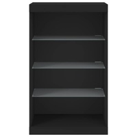 Decorate your room with this modern sideboard with LED lights, it easily blends with furniture in any style at your house. Durable material: The engineered wood is of exceptional quality with a smooth surface and features strength, stability and resistance to moisture.Ample storage space: The buffet provides plenty of storage space for keeping your magazines, books, remote controls and other small items well-organised and within easy reach.Displaying function: The sturdy top of the sideboard cabinet is ideal for displaying decorative objects, photo frames, or potted plants.Adjustable LED lights: This storage cabinet is equipped with RGB LED lights, which has different menus to change the light colour and adjust it automatically, decorating your home colourful and beautiful. Warning:To prevent it being overturned, this product must be used with the provided wall attachment device. Good to know:The product has a USB connector that requires a certified 5V USB power source (not included).