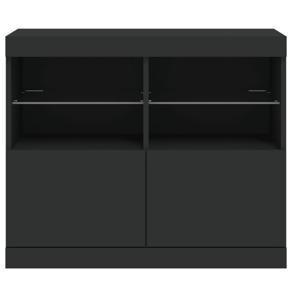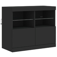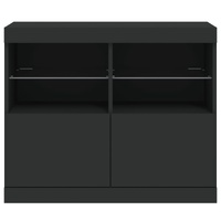 Decorate your room with this modern sideboard with LED lights, it easily blends with furniture in any style at your house. Durable material: The engineered wood is of exceptional quality with a smooth surface and features strength, stability and resistance to moisture.Ample storage space: The buffet provides plenty of storage space for keeping your magazines, books, remote controls and other small items well-organised and within easy reach.Displaying function: The sturdy top of sideboard cabinet is ideal for displaying decorative objects, photo frames, or potted plants.RGB LED lights: The storage cabinet is equipped with vibrant RGB LED lights. With various customisable menus, you can effortlessly change the colour of the lights and even set them to adjust automatically. Warning:To prevent it being overturned, this product must be used with the provided wall attachment device. Good to know:The product has a USB connector that requires a certified 5V USB power source (not included).