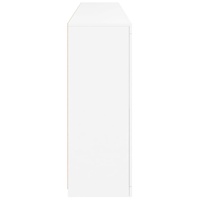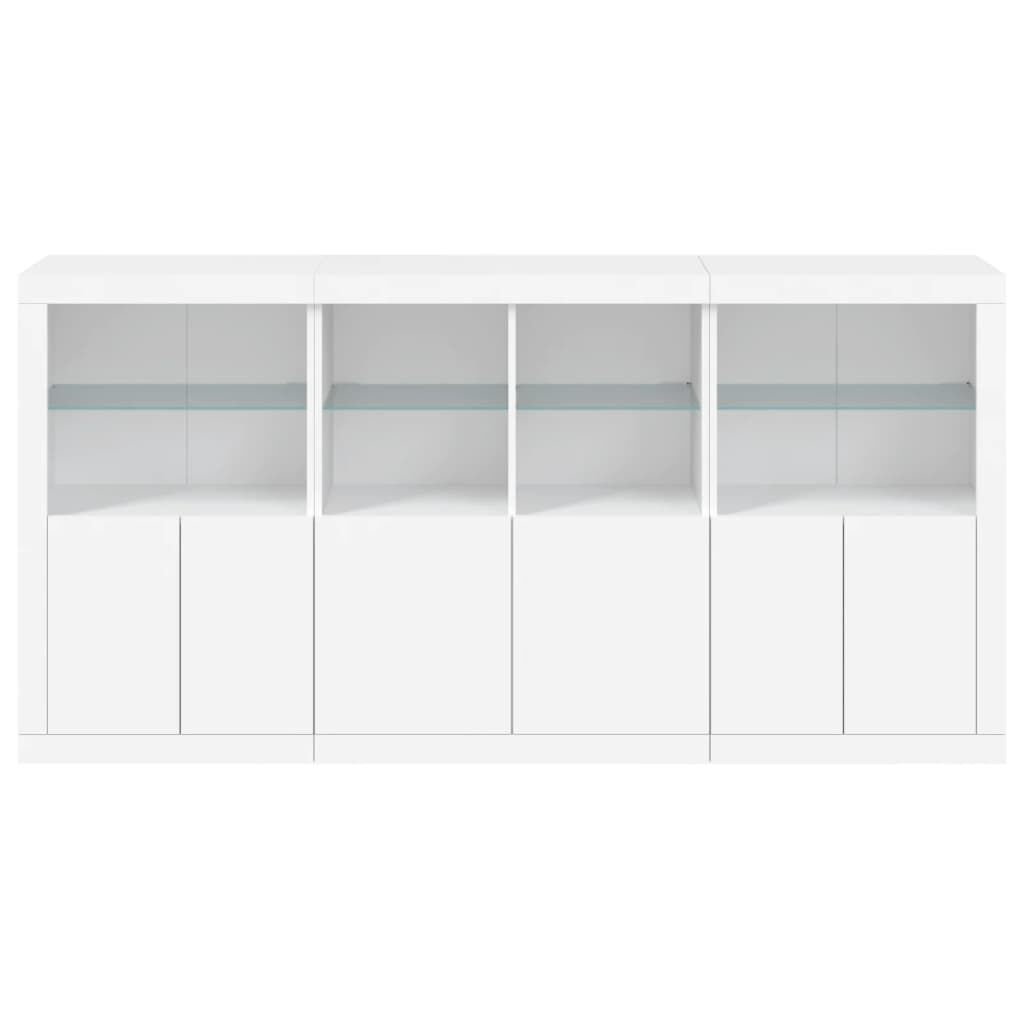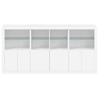 Decorate your room with this modern sideboard with LED lights, it easily blends with furniture in any style at your house. Durable material: The engineered wood is of exceptional quality with smooth surface and also features strength, stability and resistance to moisture.RGB LED lights: The buffet is equipped with vibrant RGB LED lights. With various customisable menus, you can effortlessly change the colour of the lights and even set them to adjust automatically. These LED lights not only enhance the contemporary look of the sideboard cabinet but also add to its trendy appeal.Ample storage space: The storage cabinet offers plenty of space to keep your everyday items neatly arranged and easily accessible.Displaying function: The sturdy top of the hallway cabinet is ideal for displaying decorative objects, photo frames, or potted plants.Practical doors: Keep your essentials free from dust by hiding them behind the doors of the side cabinet. Good to know:The product has a USB connector that requires a certified 5V USB power source (not included). Warning:To prevent it being overturned, this product must be used with the provided wall attachment device.