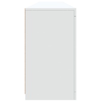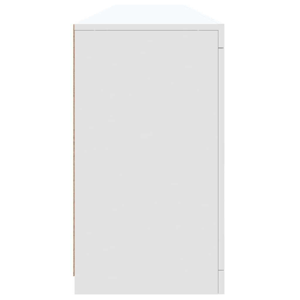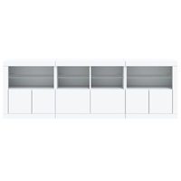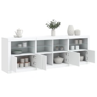 Decorate your room with this modern sideboard with LED lights, it easily blends with furniture in any style at your house. Durable material: The engineered wood is of exceptional quality with smooth surface and also features strength, stability and resistance to moisture.RGB LED lights: The buffet is equipped with vibrant RGB LED lights. With various customisable menus, you can effortlessly change the colour of the lights and even set them to adjust automatically. These LED lights not only enhance the contemporary look of the sideboard cabinet but also add to its trendy appeal.Ample storage space: The storage cabinet offers plenty of space to keep your everyday items neatly arranged and easily accessible.Displaying function: The sturdy top of the hallway cabinet is ideal for displaying decorative objects, photo frames, or potted plants.Practical doors: Keep your essentials free from dust by hiding them behind the doors of the side cabinet. Good to know:The product has a USB connector that requires a certified 5V USB power source (not included). Warning:To prevent it being overturned, this product must be used with the provided wall attachment device.