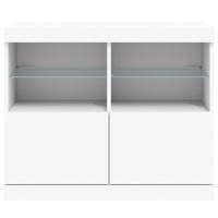 Decorate your room with this modern sideboard with LED lights, it easily blends with furniture in any style at your house. Durable material: The engineered wood is of exceptional quality with a smooth surface and features strength, stability and resistance to moisture.Ample storage space: The buffet provides plenty of storage space for keeping your magazines, books, remote controls and other small items well-organised and within easy reach.Displaying function: The sturdy top of sideboard cabinet is ideal for displaying decorative objects, photo frames, or potted plants.RGB LED lights: The storage cabinet is equipped with vibrant RGB LED lights. With various customisable menus, you can effortlessly change the colour of the lights and even set them to adjust automatically. Warning:To prevent it being overturned, this product must be used with the provided wall attachment device. Good to know:The product has a USB connector that requires a certified 5V USB power source (not included).