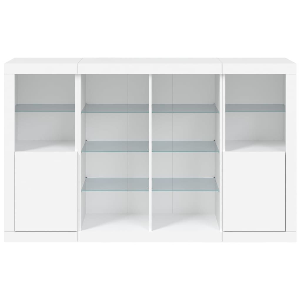 Decorate your room with these modern sideboards with LED lights, they easily blend with furniture in any style at your house. Durable material: The engineered wood is of exceptional quality with a smooth surface and features strength, stability and resistance to moisture.Ample storage space: These buffets provide plenty of storage space for keeping your magazines, books, remote controls and other small items well-organised and within easy reach.Displaying function: The sturdy top of sideboard cabinets is ideal for displaying decorative objects, photo frames, or potted plants.Adjustable LED lights: These storage cabinets are equipped with RGB LED lights, which have different menus to change the light colour and adjust it automatically, decorating your home colourful and beautiful. Warning:To prevent it being overturned, this product must be used with the provided wall attachment device.Good to know:The product has a USB connector that requires a certified 5V USB power source (not included).