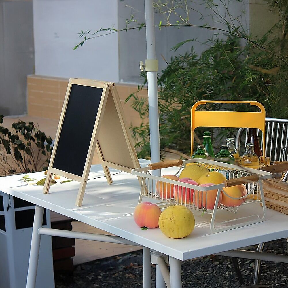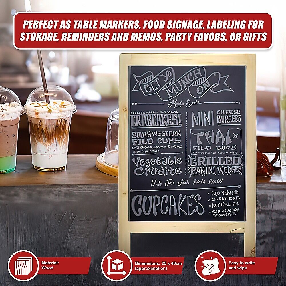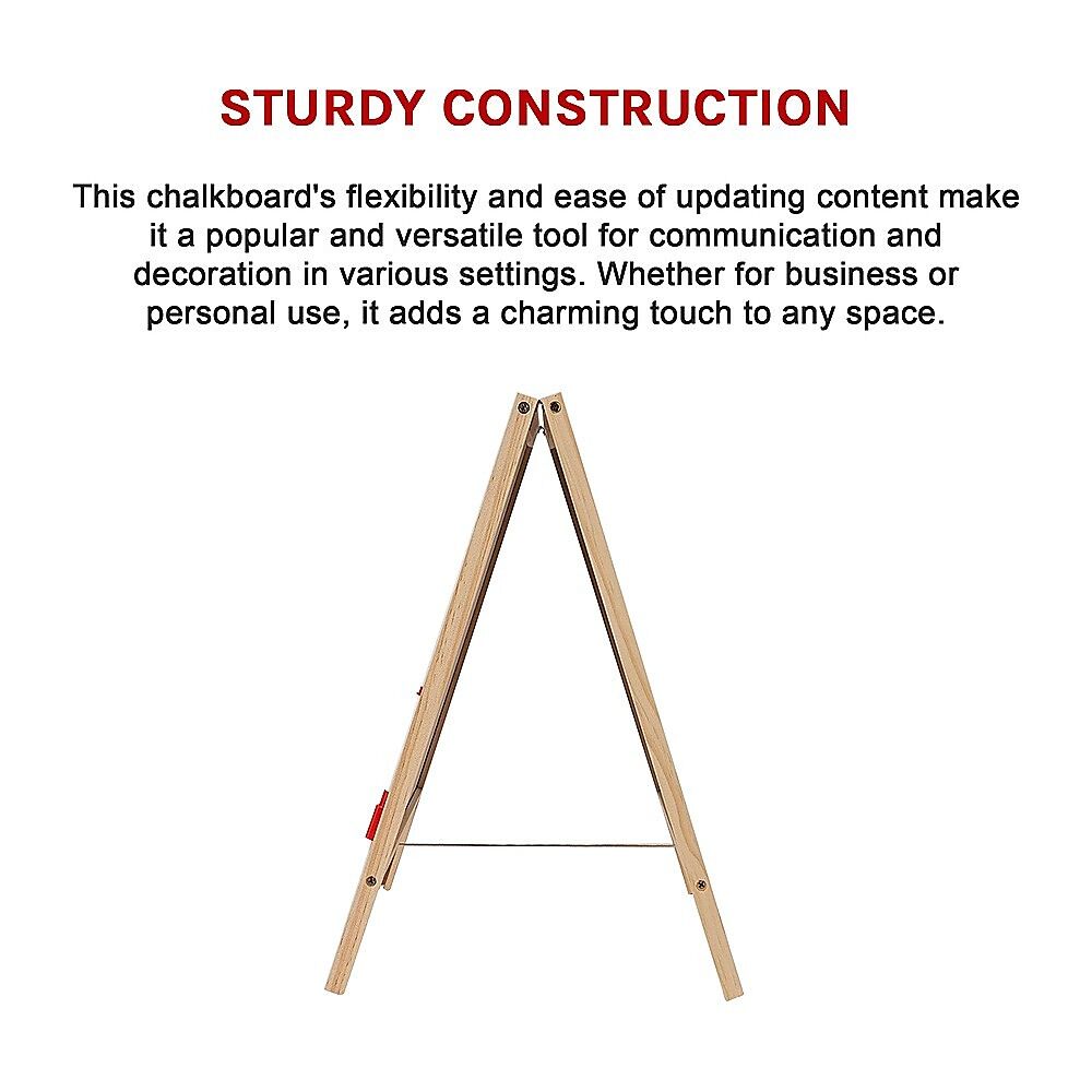 This chalkboard's flexibility and ease of updating content make it a popular and versatile tool for communication and decoration in various settings. Whether for business or personal use, it adds a charming touch to any space.