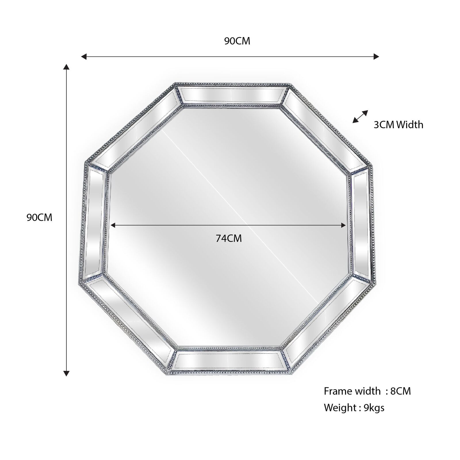 Stylish Design: The mirror's octagonal shape and silver wooden frame with beaded details add a touch of sophistication and glamour to any room in your home.