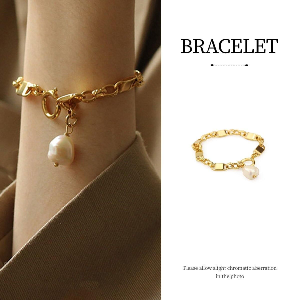 This simple yet elegant chunky chain bracelet offers a timeless design perfect for enhancing your everyday or special occasion look. Featuring a sturdy gold-tone chain with a natural pearl charm, the bracelet effortlessly combines bold style with delicate sophistication. The polished finish and versatile design make it an essential addition to any jewellery collection.
