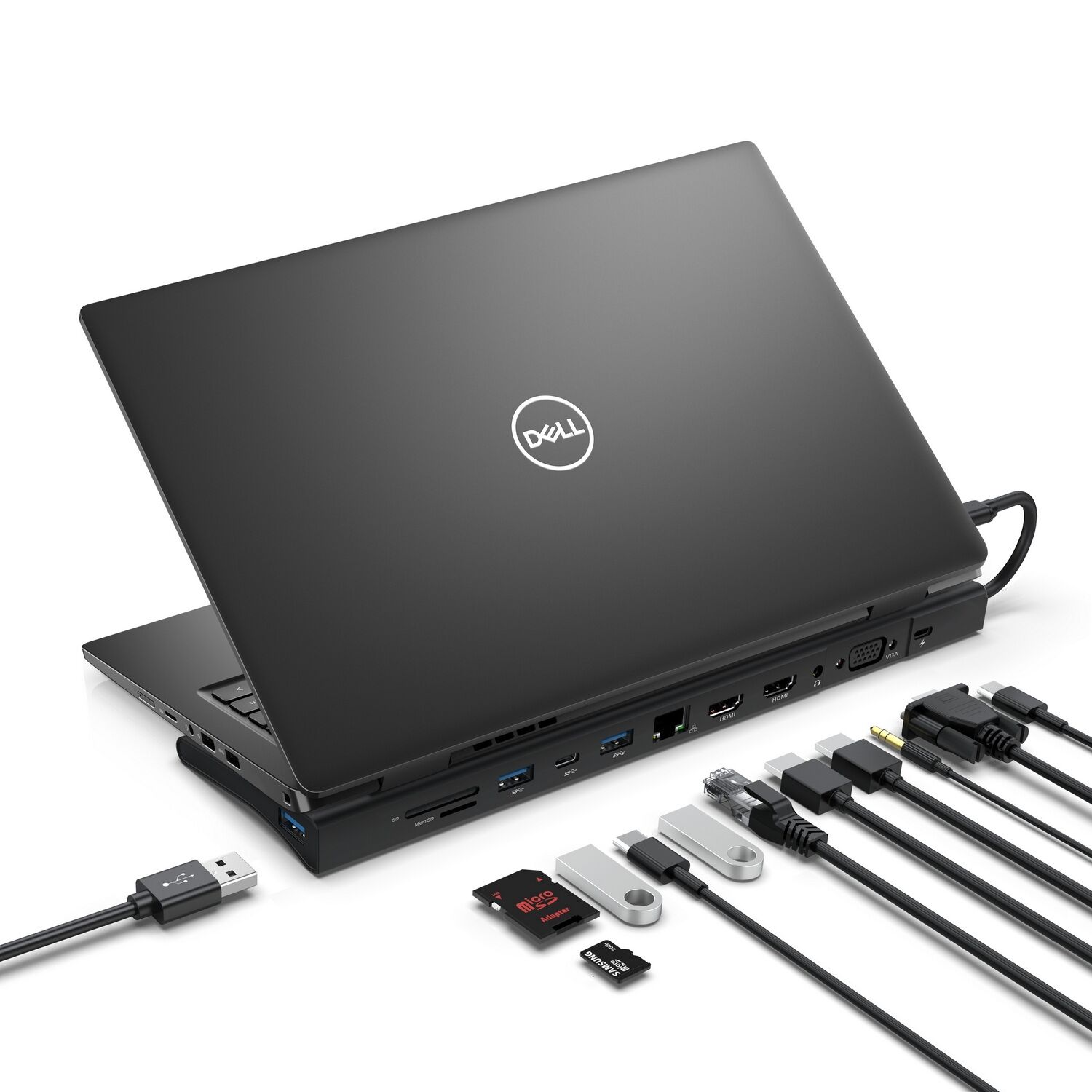 A powerful all-in-one USB-C docking station with dual HDMI, VGA outputs, 100W PD charging port, Gigabit Ethernet Port, SD/MicroSD Card reader, 3.5mm audio output and 4 port USB hub (3x SuperSpeed 5Gbps USB ports and 1x HiSpeed 480Mbps USB port)