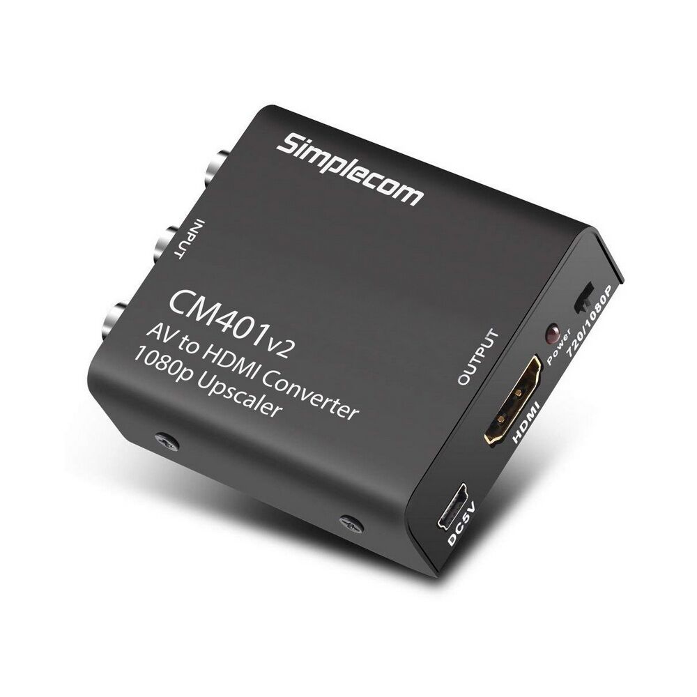 Simplecom CM401v2 Composite AV CVBS 3RCA to HDMI Video Converter 1080p Upscaler Alloy Case