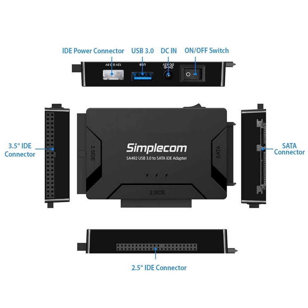 Simplecom SA492 is a 3-in-1 USB 3.0 to SATA and IDE adapter, with 3 storage interfaces and gives you the flexibility of connecting SATA and IDE storage drives to your computer via USB.