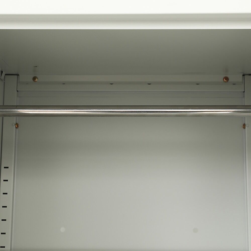 The single-door cabinet is made of cold-rolled steel, which provides stability, durability, and resistance over time. It has an opening door and 4 shelves for organizing and storing small and large items.