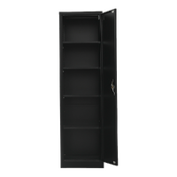 The single-door cabinet is made of cold-rolled steel, which provides stability, durability, and resistance over time. It has an opening door and 4 shelves for organizing and storing small and large items.