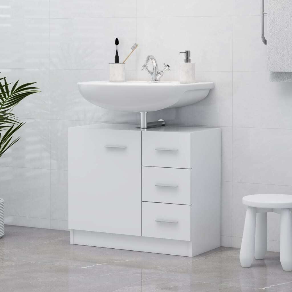 $93.99With this sink cabinet, you can create additional storage space for your bathroom with a striking, tidy appearance. The clean lines and sleek design blend into your bathroom perfectly. This cabinet is made of board, making it sturdy and stable. The storage cabinet has 1 compartment and 3 drawers, offering various storage options and extra space to store items in your bathroom. The top of the cabinet is ideal for placing the sink. Additionally, the cabinet is easy to clean with a damp cloth. Please note: The sink is not included in the delivery.