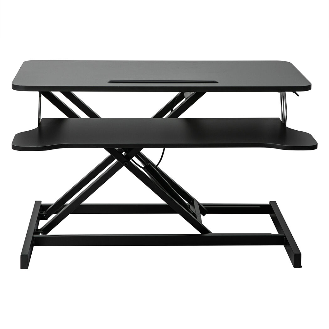 Perfect for home office or workplace use. A seamless height adjustment provides a premium height for your own requirements. There is a gas lift handle on the right just pull it then gently squeeze the deck easy to transition from a sitting to a standing position in just seconds.