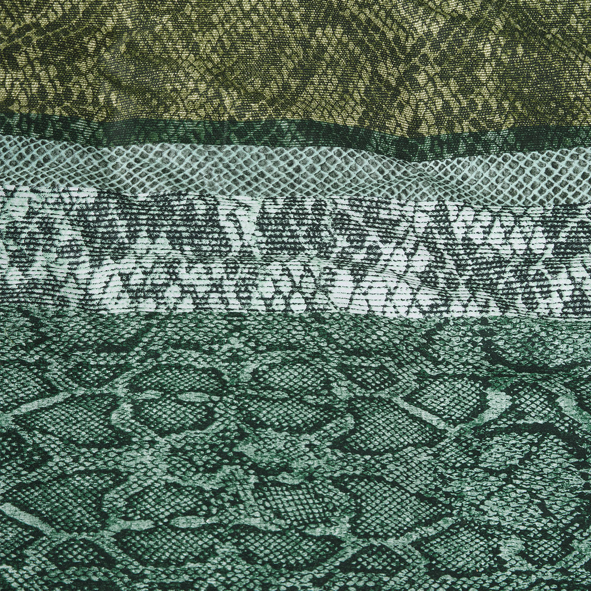 The Skin Green Cotton Quilt Cover Set by Bedding House is a unique design featuring different snake prints in each of the horizontal bands in green and olive colour tones. It is the perfect addition to any cosy, modern bedroom.
