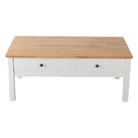 If you are looking for a simple and dignified coffee table, this wooden table will definitely meet your needs. This table is very simple, with a pure wooden tabletop paired with a white body, emitting a hint of rural atmosphere. It is very warm and can definitely add a beautiful atmosphere to your living room.