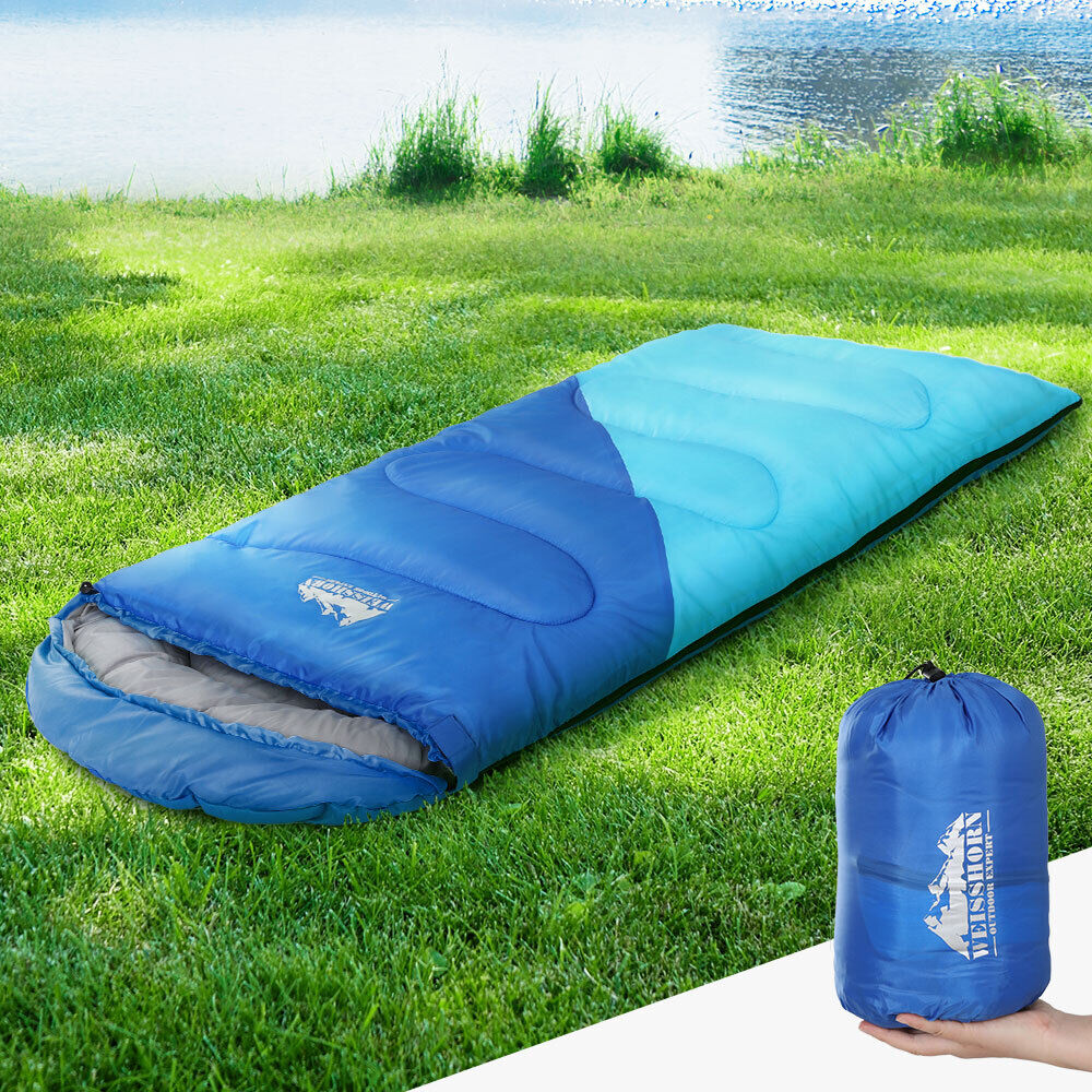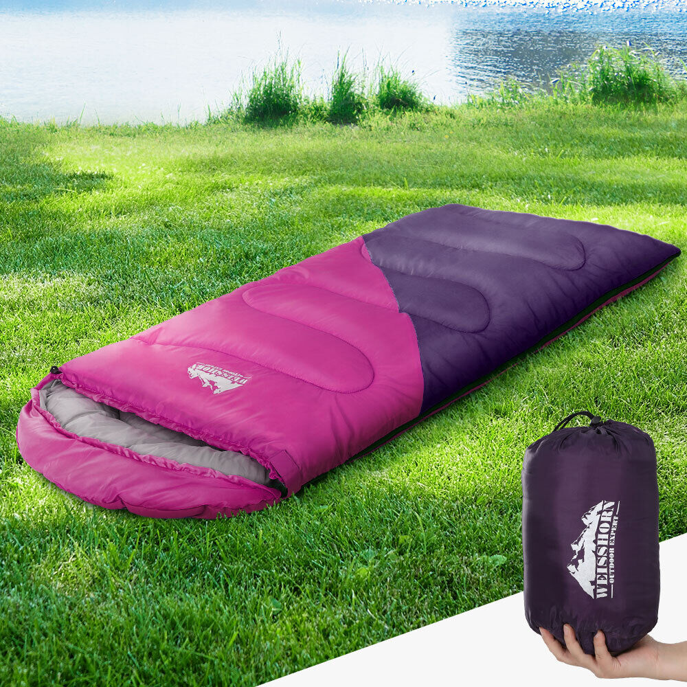 $27.25Dont let the chill ruin your next family holiday. Your kids can have a comfortable nights sleep in any weather with a Weisshorn 136cm Childrens Thermal Sleeping Bag. Suitable for temperatures between -5 and 20 degrees, the sleeping bag will keep your children cosy during long, cool nights. Filled with 250gsm hollow fibre filling and lined with soft polyester pongee fabric, the sleeping bag is soft, lightweight and water-resistant. It features an adjustable tightening strap, a secure Velcro closure, double-opening zippers and a convenient carry bag. The sleeping bag can also be used as a play or picnic mat when you need a soft surface for outdoor fun. The sleeping bag has a bright, colourful design that your kids will love. When youre out camping with the family and need more warmth, rug up with a Weisshorn Childrens Thermal Sleeping Bag.