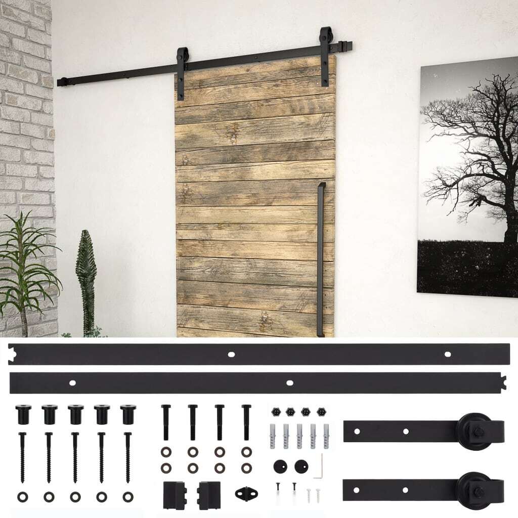 $90.23With our sliding door hardware kit, you can open or close sliding doors of your barn, kitchen, study, etc. quietly and effortlessly. The sliding door track set will suit almost any decor with its compact, timeless design. This sliding door hanger set includes 2 sliding rails (with a total length of 183 cm) and 2 wear-resistant rollers. Made of powder-coated steel, the sliding rails are exceedingly sturdy, durable and heavy-duty. Thanks to the internal bearings, your doors will slide smoothly and quietly. Doorstops are also included to prevent the derailing of the rollers, while the rubber gaskets will buffer the bump from rollers and reduce the noise. Additionally, the sliding barn door hardware set is equipped with a floor guide to stabilise the movement of the door. Delivery includes 2 sliding rails, 2 rollers, 2 doorstops, 1 floor guide, 2 anti-jump blocks, 5 fixing clamps, as well as other necessary hardware. Note: The door is not included.
