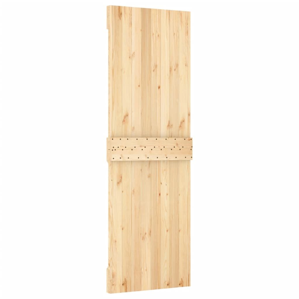 This solid pine wood sliding door is designed to enrich the entrance area of your house and also ensure better security for your home. Solid pine wood: The interior door is made of solid pine wood. Solid pine wood is a beautiful natural material. Pine wood has a straight grain, and the knots give the material its signature, rustic look.Sturdy sliding rails: Steel is an exceptionally hard and strong material. It offers sturdiness and stability. The powder coating on steel creates a protective layer against wear and tear. Made of powder-coated steel, the sliding rails are sturdy, durable and heavy-duty.Quiet and smooth sliding: Thanks to the internal bearings, your internal sliding door will slide smoothly and quietly. Doorstops are also included to prevent the derailing of the rollers, while the rubber gaskets will buffer the bump from rollers and reduce the noise.Space-saving design: This wooden sliding door saves space and looks more spacious. It is the first choice for a simple and atmospheric modern home design.Wide applications: The sliding barn door can be installed on both wooden walls and concrete walls. It's great for use in the bedroom, kitchen, barn, garage, etc.