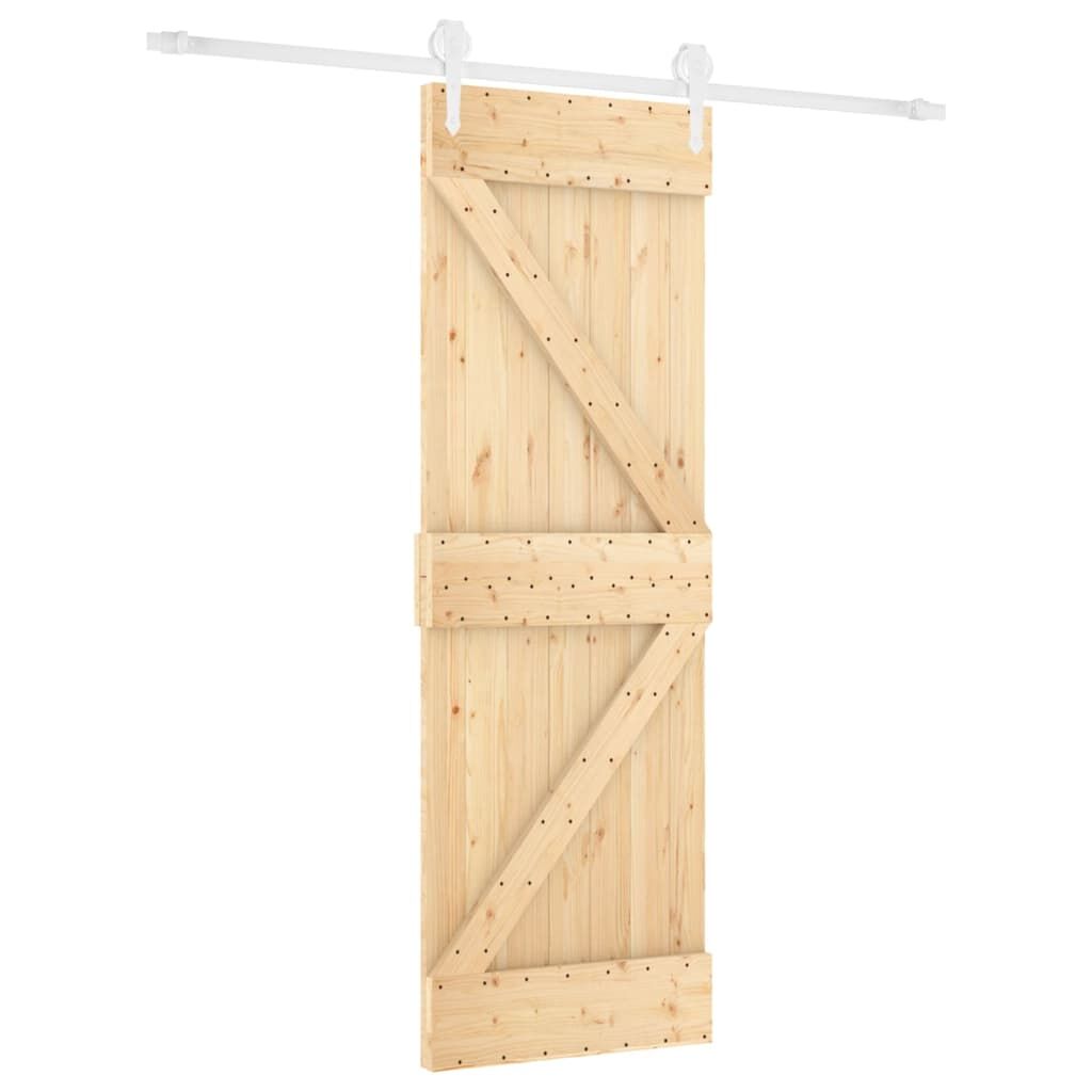 This solid pine wood sliding door is designed to enrich the entrance area of your house and also ensure better security for your home. Solid pine wood: The interior door is made of solid pine wood. Solid pine wood is a beautiful natural material. Pine wood has a straight grain, and the knots give the material its signature, rustic look.Sturdy sliding rails: Steel is an exceptionally hard and strong material. It offers sturdiness and stability. The powder coating on steel creates a protective layer against wear and tear. Made of powder-coated steel, the sliding rails are sturdy, durable and heavy-duty.Quiet and smooth sliding: Thanks to the internal bearings, your internal sliding door will slide smoothly and quietly. Doorstops are also included to prevent the derailing of the rollers, while the rubber gaskets will buffer the bump from rollers and reduce the noise.Space-saving design: This wooden sliding door saves space and looks more spacious. It is the first choice for a simple and atmospheric modern home design.Wide applications: The sliding barn door can be installed on both wooden walls and concrete walls. It's great for use in the bedroom, kitchen, barn, garage, etc.