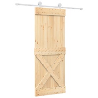 This solid pine wood sliding door is designed to enrich the entrance area of your house and also ensure better security for your home. Solid pine wood: The interior door is made of solid pine wood. Solid pine wood is a beautiful natural material. Pine wood has a straight grain, and the knots give the material its signature, rustic look.Sturdy sliding rails: Steel is an exceptionally hard and strong material. It offers sturdiness and stability. The powder coating on steel creates a protective layer against wear and tear. Made of powder-coated steel, the sliding rails are sturdy, durable and heavy-duty.Quiet and smooth sliding: Thanks to the internal bearings, your internal sliding door will slide smoothly and quietly. Doorstops are also included to prevent the derailing of the rollers, while the rubber gaskets will buffer the bump from rollers and reduce the noise.Space-saving design: This wooden sliding door saves space and looks more spacious. It is the first choice for a simple and atmospheric modern home design.Wide applications: The sliding barn door can be installed on both wooden walls and concrete walls. It's great for use in the bedroom, kitchen, barn, garage, etc.