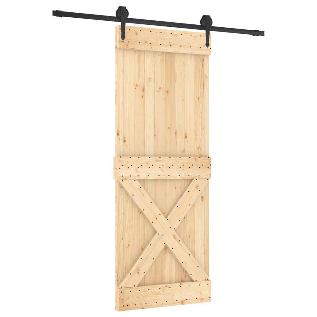 This solid pine wood sliding door is designed to enrich the entrance area of your house and also ensure better security for your home. Solid pine wood: The interior door is made of solid pine wood. Solid pine wood is a beautiful natural material. Pine wood has a straight grain, and the knots give the material its signature, rustic look.Sturdy sliding rails: Steel is an exceptionally hard and strong material. It offers sturdiness and stability. The powder coating on steel creates a protective layer against wear and tear. Made of powder-coated steel, the sliding rails are sturdy, durable and heavy-duty.Quiet and smooth sliding: Thanks to the internal bearings, your internal sliding door will slide smoothly and quietly. Doorstops are also included to prevent the derailing of the rollers, while the rubber gaskets will buffer the bump from rollers and reduce the noise.Space-saving design: This wooden sliding door saves space and looks more spacious. It is the first choice for a simple and atmospheric modern home design.Wide applications: The sliding barn door can be installed on both wooden walls and concrete walls. It's great for use in the bedroom, kitchen, barn, garage, etc.
