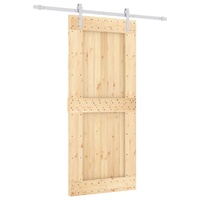 This solid pine wood sliding door is designed to enrich the entrance area of your house and also ensure better security for your home. Solid pine wood: The interior door is made of solid pine wood. Solid pine wood is a beautiful natural material. Pine wood has a straight grain, and the knots give the material its signature, rustic look.Sturdy sliding rails: Steel is an exceptionally hard and strong material. It offers sturdiness and stability. The powder coating on steel creates a protective layer against wear and tear. Made of powder-coated steel, the sliding rails are sturdy, durable and heavy-duty.Quiet and smooth sliding: Thanks to the internal bearings, your internal sliding door will slide smoothly and quietly. Doorstops are also included to prevent the derailing of the rollers, while the rubber gaskets will buffer the bump from rollers and reduce the noise.Space-saving design: This wooden sliding door saves space and looks more spacious. It is the first choice for a simple and atmospheric modern home design.Wide applications: The sliding barn door can be installed on both wooden walls and concrete walls. It's great for use in the bedroom, kitchen, barn, garage, etc.