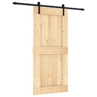 This solid pine wood sliding door is designed to enrich the entrance area of your house and also ensure better security for your home. Solid pine wood: The interior door is made of solid pine wood. Solid pine wood is a beautiful natural material. Pine wood has a straight grain, and the knots give the material its signature, rustic look.Sturdy sliding rails: Steel is an exceptionally hard and strong material. It offers sturdiness and stability. The powder coating on steel creates a protective layer against wear and tear. Made of powder-coated steel, the sliding rails are sturdy, durable and heavy-duty.Quiet and smooth sliding: Thanks to the internal bearings, your internal sliding door will slide smoothly and quietly. Doorstops are also included to prevent the derailing of the rollers, while the rubber gaskets will buffer the bump from rollers and reduce the noise.Space-saving design: This wooden sliding door saves space and looks more spacious. It is the first choice for a simple and atmospheric modern home design.Wide applications: The sliding barn door can be installed on both wooden walls and concrete walls. It's great for use in the bedroom, kitchen, barn, garage, etc.