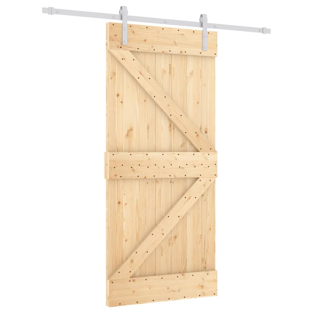 This solid pine wood sliding door is designed to enrich the entrance area of your house and also ensure better security for your home. Solid pine wood: The interior door is made of solid pine wood. Solid pine wood is a beautiful natural material. Pine wood has a straight grain, and the knots give the material its signature, rustic look.Sturdy sliding rails: Steel is an exceptionally hard and strong material. It offers sturdiness and stability. The powder coating on steel creates a protective layer against wear and tear. Made of powder-coated steel, the sliding rails are sturdy, durable and heavy-duty.Quiet and smooth sliding: Thanks to the internal bearings, your internal sliding door will slide smoothly and quietly. Doorstops are also included to prevent the derailing of the rollers, while the rubber gaskets will buffer the bump from rollers and reduce the noise.Space-saving design: This wooden sliding door saves space and looks more spacious. It is the first choice for a simple and atmospheric modern home design.Wide applications: The sliding barn door can be installed on both wooden walls and concrete walls. It's great for use in the bedroom, kitchen, barn, garage, etc.