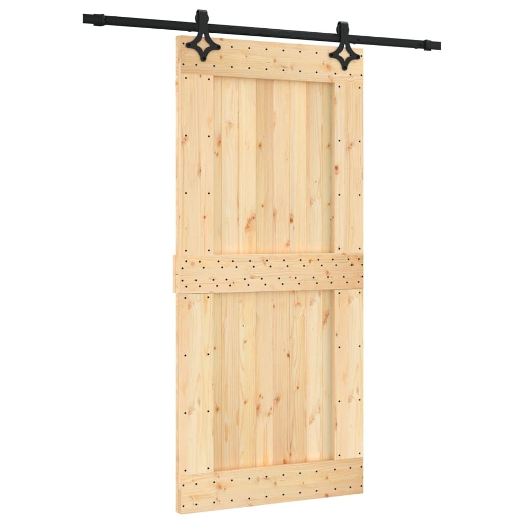 This solid pine wood sliding door is designed to enrich the entrance area of your house and also ensure better security for your home. Solid pine wood: The interior door is made of solid pine wood. Solid pine wood is a beautiful natural material. Pine wood has a straight grain, and the knots give the material its signature, rustic look.Sturdy sliding rails: Steel is an exceptionally hard and strong material. It offers sturdiness and stability. The powder coating on steel creates a protective layer against wear and tear. Made of powder-coated steel, the sliding rails are sturdy, durable and heavy-duty.Quiet and smooth sliding: Thanks to the internal bearings, your internal sliding door will slide smoothly and quietly. Doorstops are also included to prevent the derailing of the rollers, while the rubber gaskets will buffer the bump from rollers and reduce the noise.Space-saving design: This wooden sliding door saves space and looks more spacious. It is the first choice for a simple and atmospheric modern home design.Wide applications: The sliding barn door can be installed on both wooden walls and concrete walls. It's great for use in the bedroom, kitchen, barn, garage, etc.