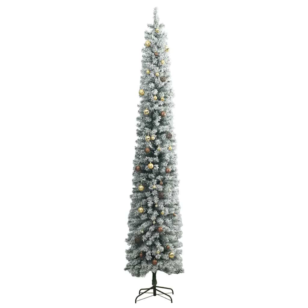 Comes with beautiful holiday decorations, this slim Christmas tree with LEDs will be eye-catching in the evening and create just the right atmosphere for this Christmas. Space-saving design: The pencil Christmas tree can be placed against the wall to save more space. It is a great choice if you have limited space.8 lighting modes: The LED string light has 8 different lighting effects (combination, in wave, sequential, slow glow, chasing/running water, slow fade, twinkle/flash, and steady on). You can switch the lighting modes by pressing the button on the USB to create different holiday atmospheres.Beautiful decoration: The modern Christmas tree is decorated with artificial white snow, creating an attractive look. These shiny Christmas balls are available in three different sizes, which bring more possibilities for your DIY decoration.Sturdy stand: The metal stand provides your Xmas tree with optimal sturdiness and stability.Economical choice: You can reuse the holiday ornament every year, which is a cost-effective option compared to getting a real tree. Good to know:We recommend setting aside 60-75 minutes after assembly to properly shape the tree by peeling back the branches and pulling the tips apart to give the branches a more full-bodied look.The product has a USB connector that requires a certified 5V USB power source (not included).Please ensure that the USB connection is plugged in a dry environment.