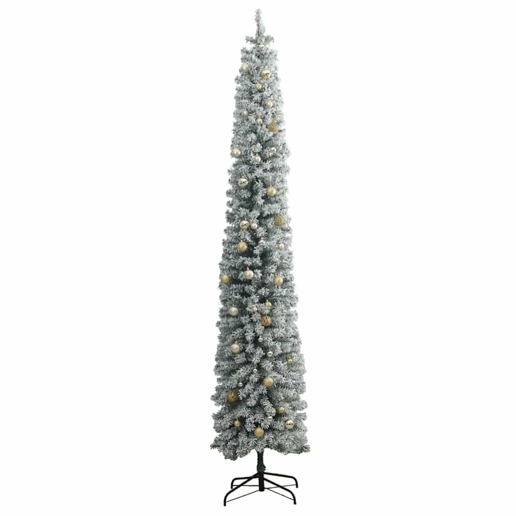 Comes with beautiful holiday decorations, this slim Christmas tree with LEDs will be eye-catching in the evening and create just the right atmosphere for this Christmas. Space-saving design: The pencil Christmas tree can be placed against the wall to save more space. It is a great choice if you have limited space.8 lighting modes: The LED string light has 8 different lighting effects (combination, in wave, sequential, slow glow, chasing/running water, slow fade, twinkle/flash, and steady on). You can switch the lighting modes by pressing the button on the USB to create different holiday atmospheres.Beautiful decoration: The modern Christmas tree is decorated with artificial white snow, creating an attractive look. These shiny Christmas balls are available in three different sizes, which bring more possibilities for your DIY decoration.Sturdy stand: The metal stand provides your Xmas tree with optimal sturdiness and stability.Economical choice: You can reuse the holiday ornament every year, which is a cost-effective option compared to getting a real tree. Good to know:We recommend setting aside 60-75 minutes after assembly to properly shape the tree by peeling back the branches and pulling the tips apart to give the branches a more full-bodied look.The product has a USB connector that requires a certified 5V USB power source (not included).Please ensure that the USB connection is plugged in a dry environment.