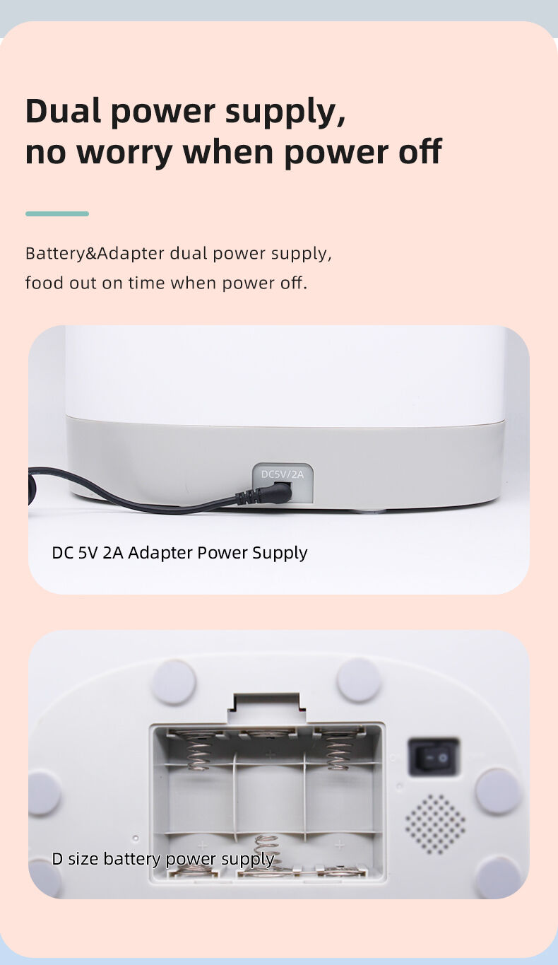 Thedispenser is made of ABS plastic, which does not burden nature and is intended for use in the food industry. It is so gentle not only on the health of pets but also on nature. It will not disappoint you even in the event of a power failure, as it is equipped with a backup method of battery power. In addition, using the dispenser is very easy. Just plug it in and download a mobile app to your smart device that will walk you through all the settings. TheSmart Feeder thus guarantees the supply of food for your pet at the right time and in the optimal dose.