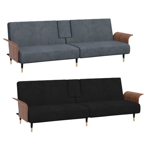 $355.31This sofa bed is perfect for accommodating overnight guests while providing a comfortable seating space during the day. Sofa velvet: Velvet is a soft, luxurious fabric that is recognised by its dense pile of evenly cut fibres that have a smooth nap. Velvet fabric features a distinctively soft feel, making it comfortable to touch.Adjustable backrest: The backrest is adjustable in 3 positions as per your needs.Comfortable seating: The sleeper sofa is designed with a backrest and armrests to offer you a comfortable seating experience.Practical design: The day bed sofa comes with a foldable tea table with two cup holders. Also, the tea table features 2 types of USB ports, which can be used to charge your phones, tablet computer, etc.Sturdy and stable frame: The plywood frame of the couch bed ensures sturdiness and stability.Metal feet: The metal feet of the folding sofa bed add a calm style to your interior while ensuring stability. Good to know:The product has a USB connector, but the certified 5V USB power source is not included.To make assembly as easy as possible, each product is delivered with a manual.