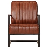 This sofa chair is an excellent place for chatting, reading, watching TV or just relaxing. It is meant to be a focal point in your home. Real leather: This lounge chair is made from real leather that is a naturally timeless material. It can last a lifetime with proper care and maintenance. The smooth surface also gives it a luxurious look while ensuring optimal comfort.Sturdy and stable frame: The powder-coated iron of accent chair brings an industrial style to your interior while ensuring sturdiness and stability.Comfortable seat experience: Thanks to the soft seat and backrest, as well as the armrests, this single sofa chair will surely bring you optimal seating comfort.Stylish design: The clean lines and sleek design of this TV chair will blend into your living room perfectly.
