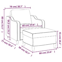 This sofa chair with footstool is an excellent place for chatting, reading, watching TV or just relaxing. It is meant to be a focal point in your home. Durable fabric: The fabric features a simple and clean look while remaining breathable and long-lasting.Sturdy and stable frame: The plywood and metal frame of the sofa with footstool ensures sturdiness and stability.Comfortable seat experience: The armchair is highly comfortable with the thickly padded seat, armrests and back pillow.Versatile footstool: The stool is suitable for resting your feet when you lie on a sofa or recliner, or offering you an additional seat in your room. Additionally, the simple design and compact size make it ideal for almost all your living spaces.Eye-catching design: Featuring a simple yet modern design, this sofa with footstool is meant to be an eye-catcher in your room.